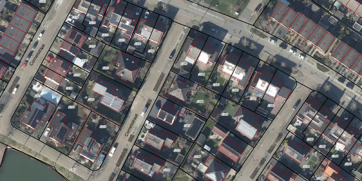 Het perceel waarop Cornetstraat 32 staat heeft een oppervlakte van 465 m². Dit is een groot perceel. De perceeloppervlakte wordt geregistreerd door het Kadaster. Gedetailleerde informatie over de maten van dit perceel kunt u vinden in het rapport Kadastrale kaart met maatvoering van Cornetstraat 32.