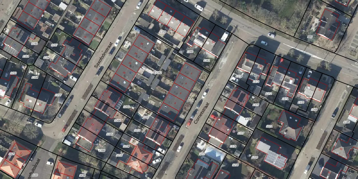 Het perceel waarop Cornetstraat 6 staat heeft een oppervlakte van 1835 m². Dit is een zeer groot perceel. De perceeloppervlakte wordt geregistreerd door het Kadaster. Gedetailleerde informatie over de maten van dit perceel kunt u vinden in het rapport Kadastrale kaart met maatvoering van Cornetstraat 6.