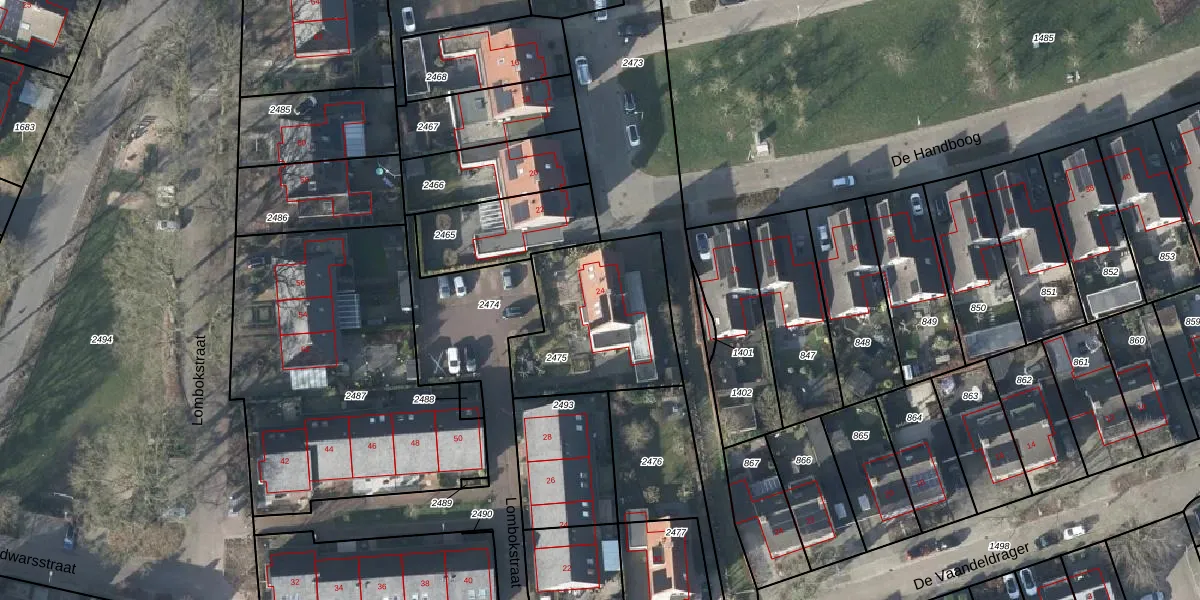 Het perceel waarop De Handboog 24 staat heeft een oppervlakte van 603 m². Dit is een groot perceel. De perceeloppervlakte wordt geregistreerd door het Kadaster. Gedetailleerde informatie over de maten van dit perceel kunt u vinden in het rapport Kadastrale kaart met maatvoering van De Handboog 24.