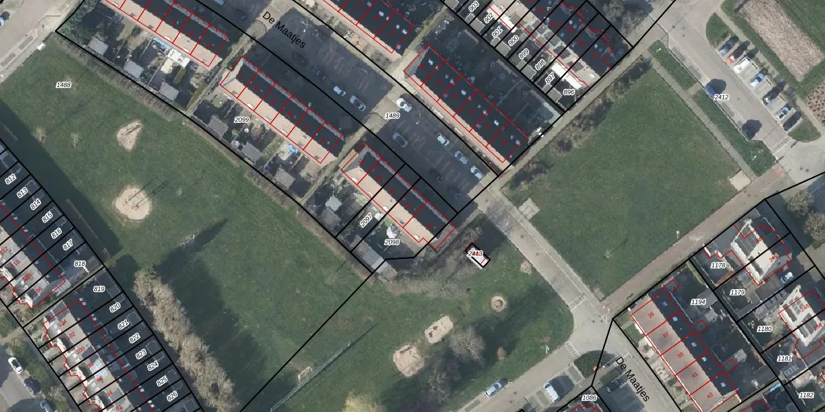 De Maatjes 32 is gelegen op kadastraal perceel DVN00F2098. Deze kadastrale aanduiding is uniek en wordt gebruikt door het Kadaster om eigendomsrechten en andere zakelijke rechten vast te leggen. Het perceel maakt onderdeel uit van de kadastrale gemeente Duiven.