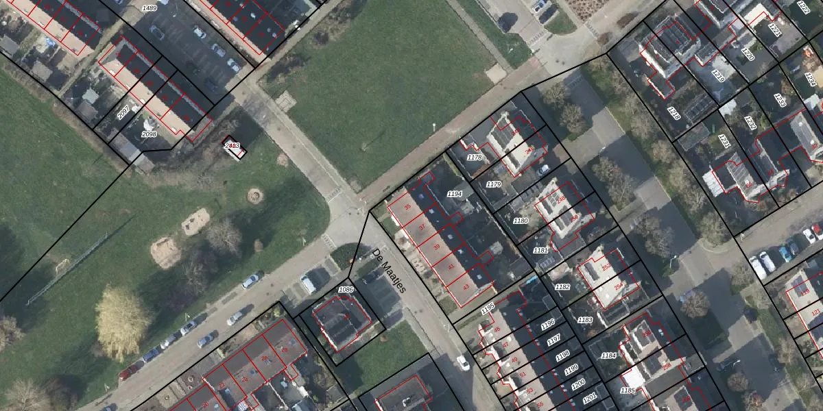 Het perceel waarop De Maatjes 35 staat heeft een oppervlakte van 827 m². Dit is een groot perceel. De perceeloppervlakte wordt geregistreerd door het Kadaster. Gedetailleerde informatie over de maten van dit perceel kunt u vinden in het rapport Kadastrale kaart met maatvoering van De Maatjes 35.