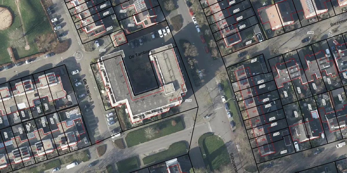 De Tamboer 105 is gelegen op kadastraal perceel DVN00F1215. Deze kadastrale aanduiding is uniek en wordt gebruikt door het Kadaster om eigendomsrechten en andere zakelijke rechten vast te leggen. Het perceel maakt onderdeel uit van de kadastrale gemeente Duiven.