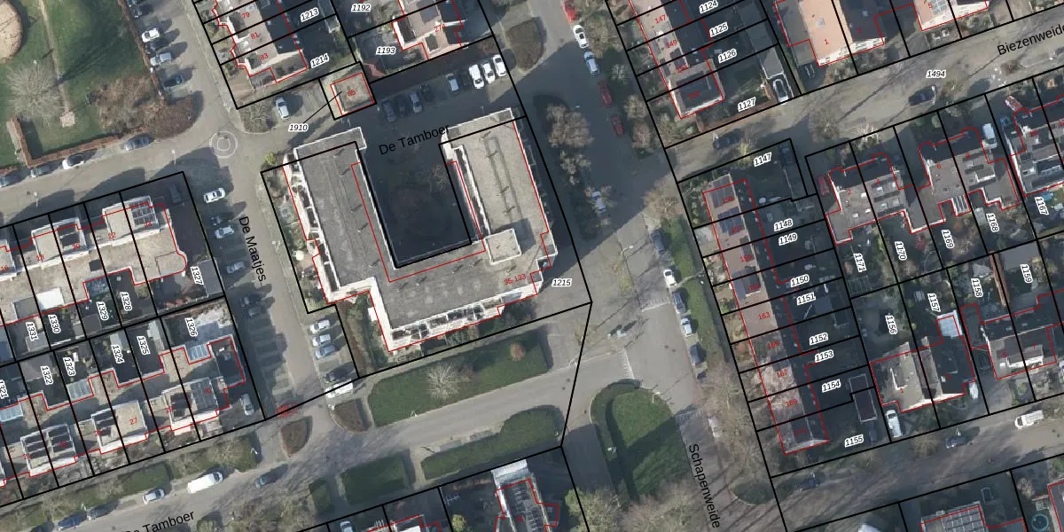 De Tamboer 47 is gelegen op kadastraal perceel DVN00F1215. Deze kadastrale aanduiding is uniek en wordt gebruikt door het Kadaster om eigendomsrechten en andere zakelijke rechten vast te leggen. Het perceel maakt onderdeel uit van de kadastrale gemeente Duiven.