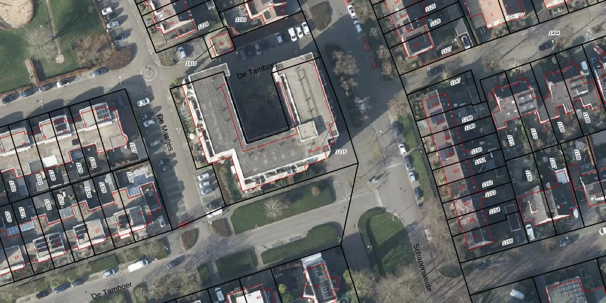 Het perceel waarop De Tamboer 97 staat heeft een oppervlakte van 1632 m². Dit is een zeer groot perceel. De perceeloppervlakte wordt geregistreerd door het Kadaster. Gedetailleerde informatie over de maten van dit perceel kunt u vinden in het rapport Kadastrale kaart met maatvoering van De Tamboer 97.