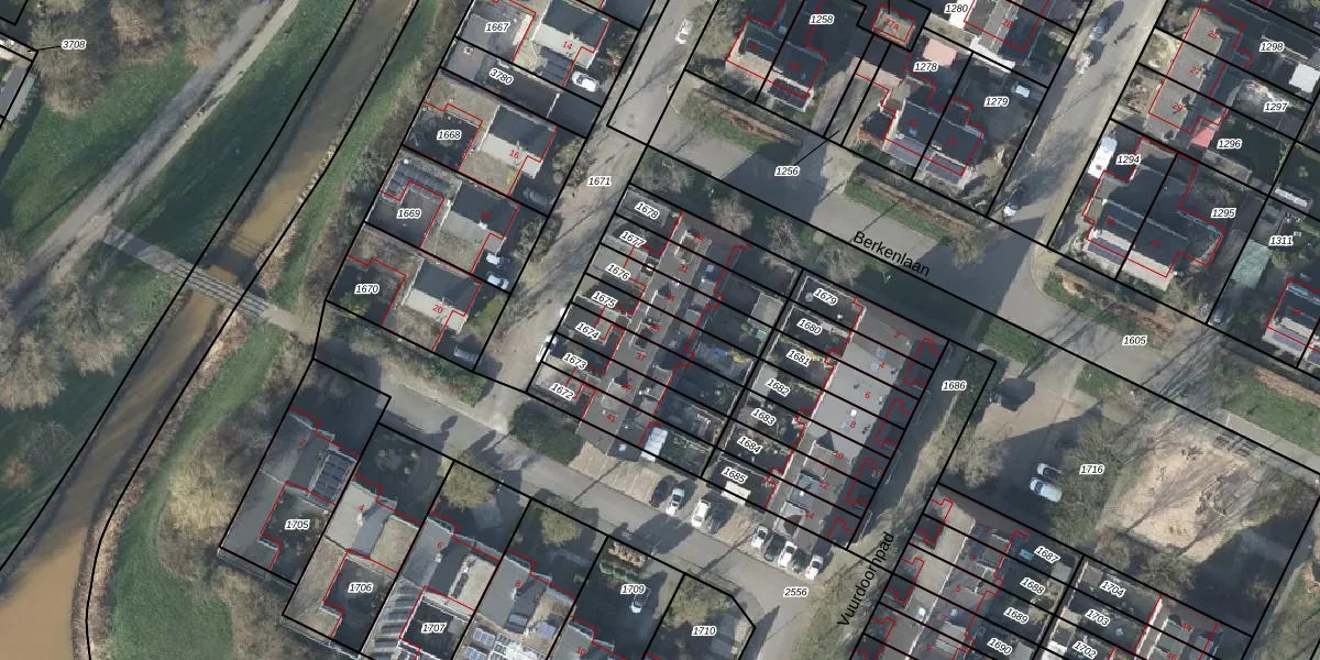 Het perceel waarop het adres ligt is DVN00-E-1675. De afkorting 'DVN00' staat voor kadastrale gemeente Duiven. Het perceel is 148 m² groot. Dat is kleiner dan de gemiddelde perceeloppervlakte in Duiven, dat op 2661,59 m² ligt. De grootste perceeloppervlakte in de kadastrale gemeente is 22,4 ha. De kleinste oppervlakte bedraagt 0 m². Er zijn geen andere adressen aanwezig op het perceel. De huidige grenzen van het perceel zijn digitaal in de Basisregistratie Kadaster (BRK) geregistreerd op 11-04-2008.