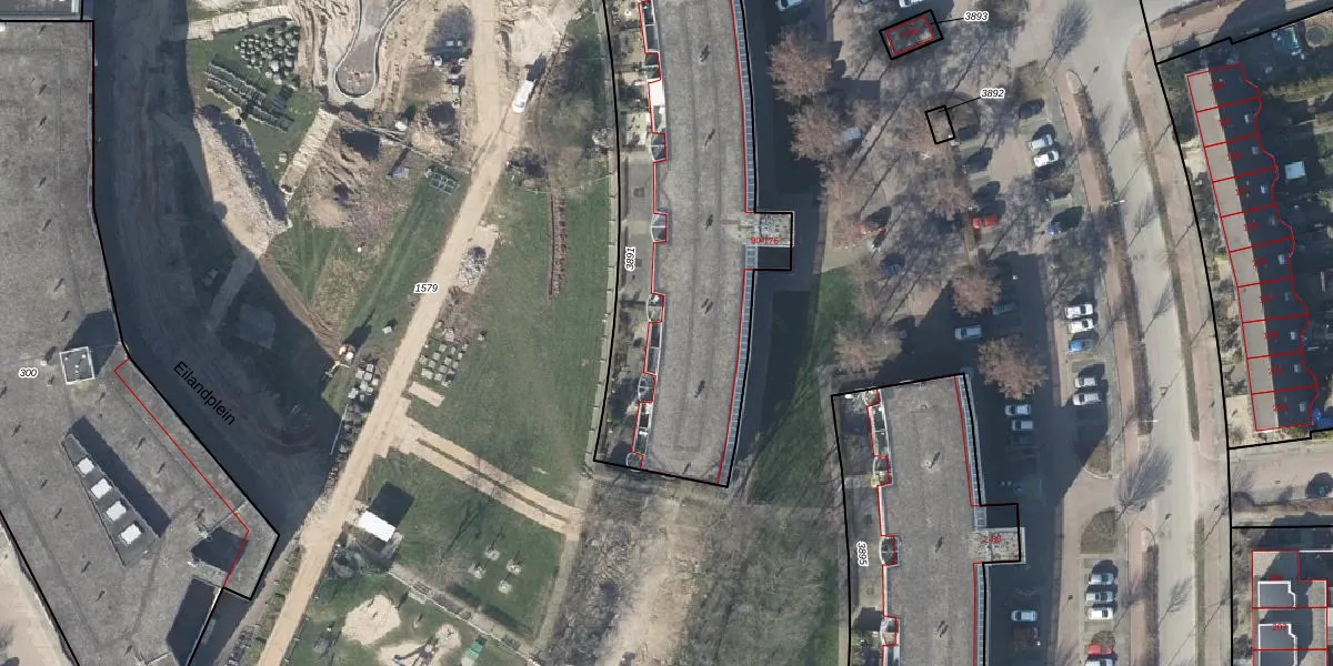 Het perceel waarop Eilandplein 126 staat heeft een oppervlakte van 1570 m². Dit is een zeer groot perceel. De perceeloppervlakte wordt geregistreerd door het Kadaster. Gedetailleerde informatie over de maten van dit perceel kunt u vinden in het rapport Kadastrale kaart met maatvoering van Eilandplein 126.