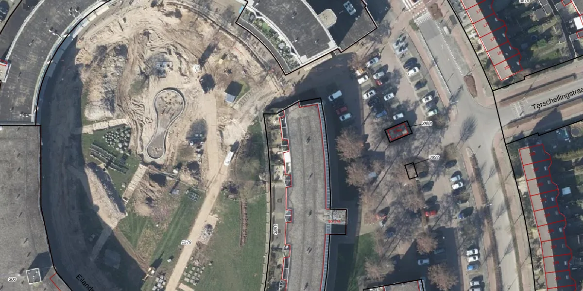 Het perceel waarop Eilandplein 166 staat heeft een oppervlakte van 1570 m². Dit is een zeer groot perceel. De perceeloppervlakte wordt geregistreerd door het Kadaster. Gedetailleerde informatie over de maten van dit perceel kunt u vinden in het rapport Kadastrale kaart met maatvoering van Eilandplein 166.