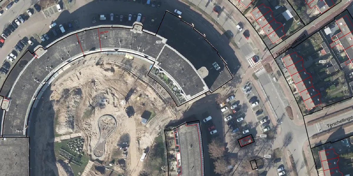 Het perceel waarop het adres ligt is DVN00-D-290. De afkorting 'DVN00' staat voor kadastrale gemeente Duiven. De oppervlakte van het perceel is 3235 m². Dat is groter dan gemiddeld in Duiven, waar de gemiddelde perceeloppervlakte op 2661,59 m² ligt. Het grootste perceel in de kadastrale gemeente is 22,4 ha. Het kleinste perceel heeft een oppervlakte van 0 m². Op het perceel liggen in totaal 63 adressen. In de Basisregistratie Kadaster (BRK) werden de grenzen van het perceel geregistreerd op 15-10-2003.