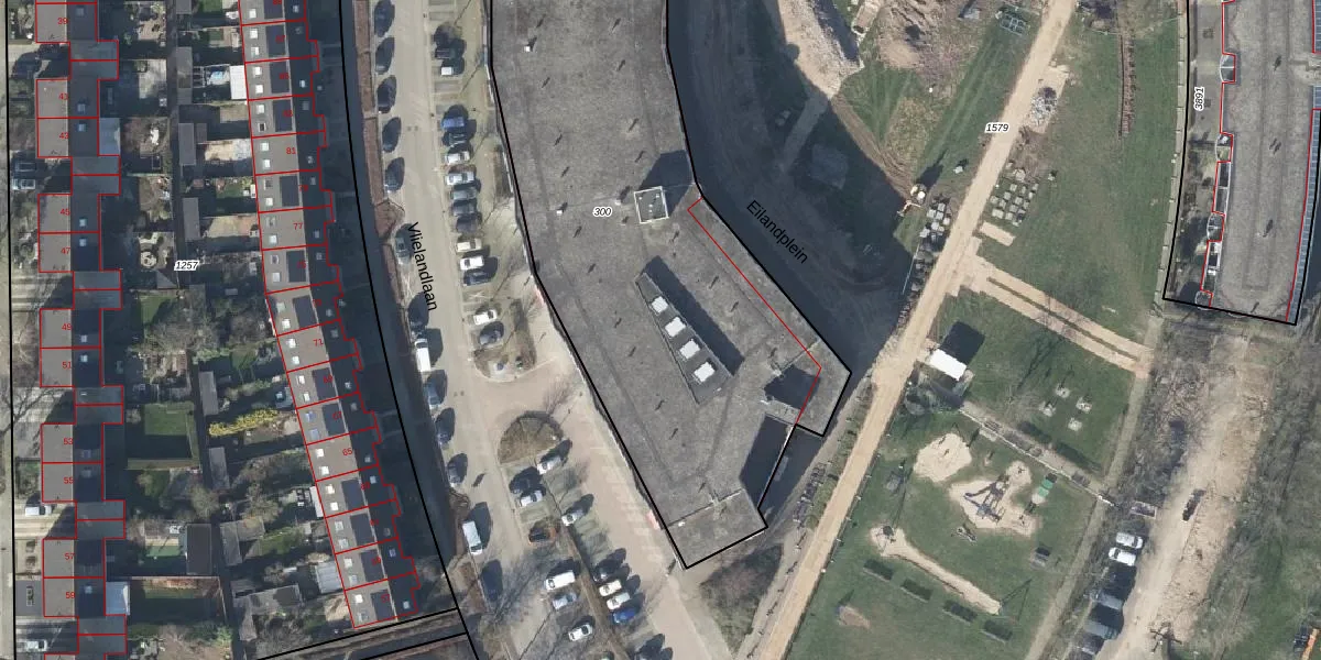 Het perceel waarop Eilandplein 302 staat heeft een oppervlakte van 2950 m². Dit is een zeer groot perceel. De perceeloppervlakte wordt geregistreerd door het Kadaster. Gedetailleerde informatie over de maten van dit perceel kunt u vinden in het rapport Kadastrale kaart met maatvoering van Eilandplein 302.