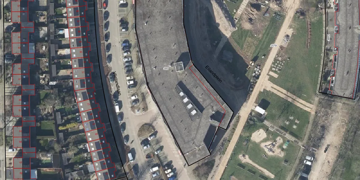 Het perceel waarop Eilandplein 304 staat heeft een oppervlakte van 2950 m². Dit is een zeer groot perceel. De perceeloppervlakte wordt geregistreerd door het Kadaster. Gedetailleerde informatie over de maten van dit perceel kunt u vinden in het rapport Kadastrale kaart met maatvoering van Eilandplein 304.