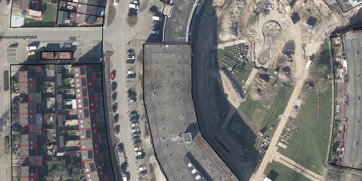 Het perceel waarop het adres ligt is DVN00-D-300. De afkorting 'DVN00' staat voor kadastrale gemeente Duiven. De oppervlakte van het perceel is 2950 m². Dat is groter dan gemiddeld in Duiven, waar de gemiddelde perceeloppervlakte op 2661,59 m² ligt. Het kleinste perceel in de kadastrale gemeente is 0 m² groot. De grootste perceeloppervlakte is 22,4 ha. Er zijn 85 adressen aanwezig op het perceel. De huidige grenzen van het perceel zijn digitaal in de Basisregistratie Kadaster (BRK) geregistreerd op 15-10-2003.