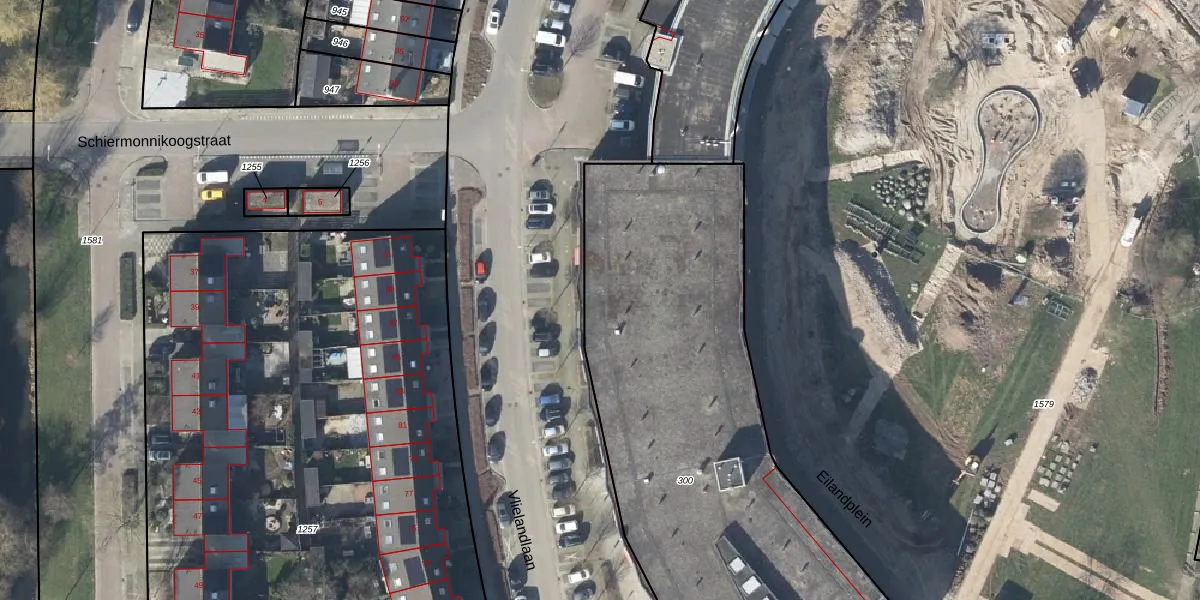 Het perceel waarop Eilandplein 432 staat heeft een oppervlakte van 2950 m². Dit is een zeer groot perceel. De perceeloppervlakte wordt geregistreerd door het Kadaster. Gedetailleerde informatie over de maten van dit perceel kunt u vinden in het rapport Kadastrale kaart met maatvoering van Eilandplein 432.