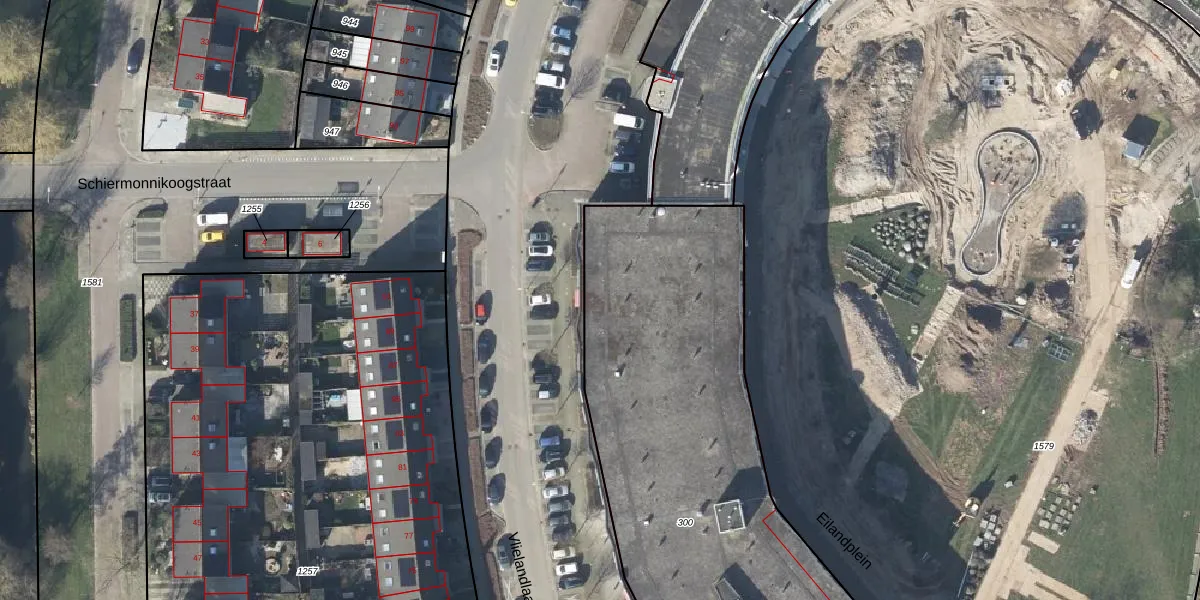 Het perceel waarop Eilandplein 436 staat heeft een oppervlakte van 2950 m². Dit is een zeer groot perceel. De perceeloppervlakte wordt geregistreerd door het Kadaster. Gedetailleerde informatie over de maten van dit perceel kunt u vinden in het rapport Kadastrale kaart met maatvoering van Eilandplein 436.