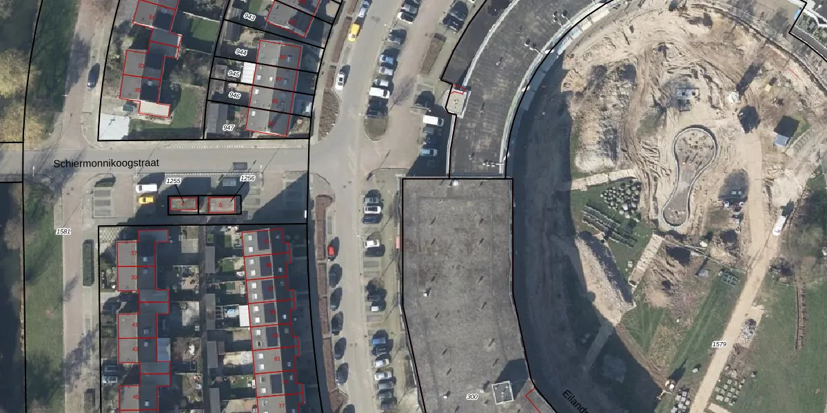 Het perceel waarop Eilandplein 440 staat heeft een oppervlakte van 2950 m². Dit is een zeer groot perceel. De perceeloppervlakte wordt geregistreerd door het Kadaster. Gedetailleerde informatie over de maten van dit perceel kunt u vinden in het rapport Kadastrale kaart met maatvoering van Eilandplein 440.