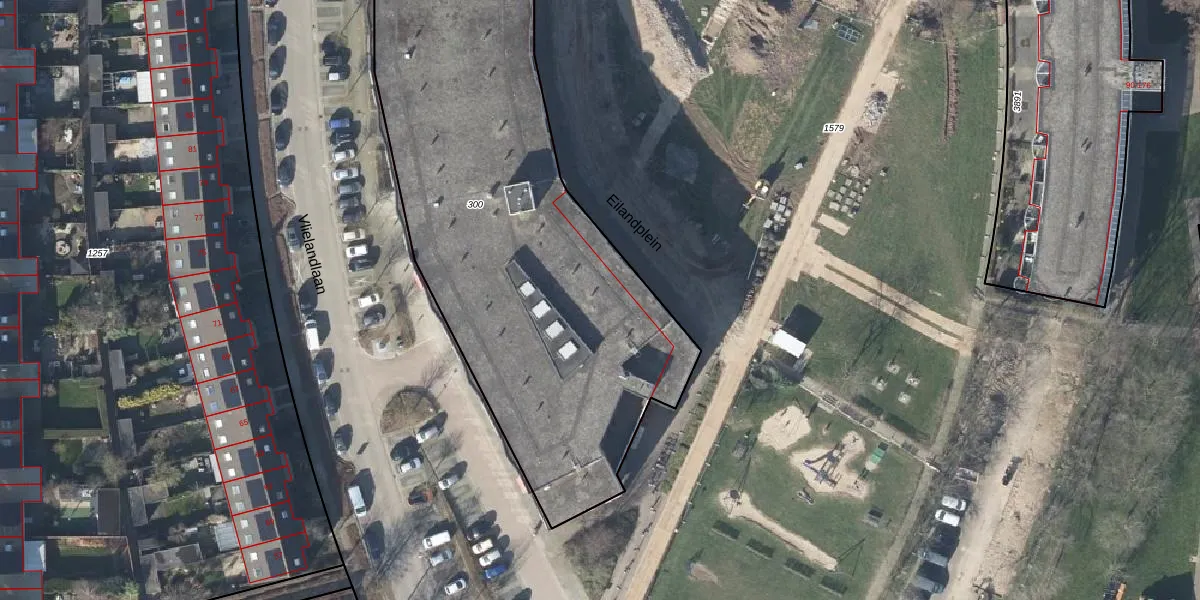 Het perceel waarop Eilandplein 468 staat heeft een oppervlakte van 2950 m². Dit is een zeer groot perceel. De perceeloppervlakte wordt geregistreerd door het Kadaster. Gedetailleerde informatie over de maten van dit perceel kunt u vinden in het rapport Kadastrale kaart met maatvoering van Eilandplein 468.