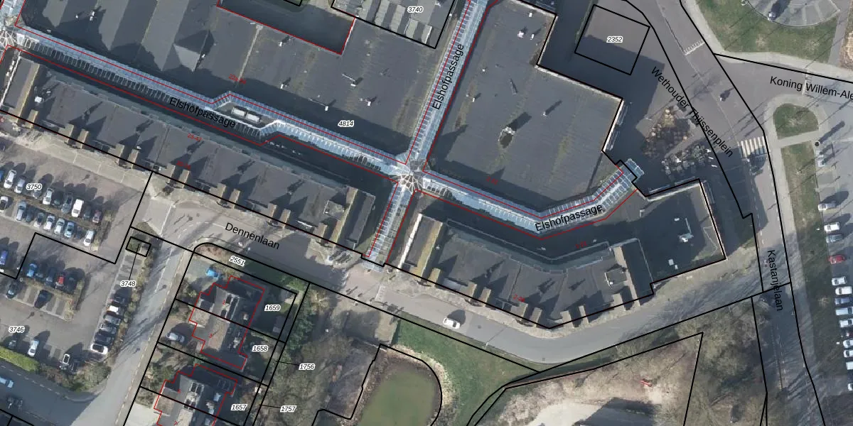 Elshofpassage 21 is gelegen op kadastraal perceel DVN00E4814. Deze kadastrale aanduiding is uniek en wordt gebruikt door het Kadaster om eigendomsrechten en andere zakelijke rechten vast te leggen. Het perceel maakt onderdeel uit van de kadastrale gemeente Duiven.