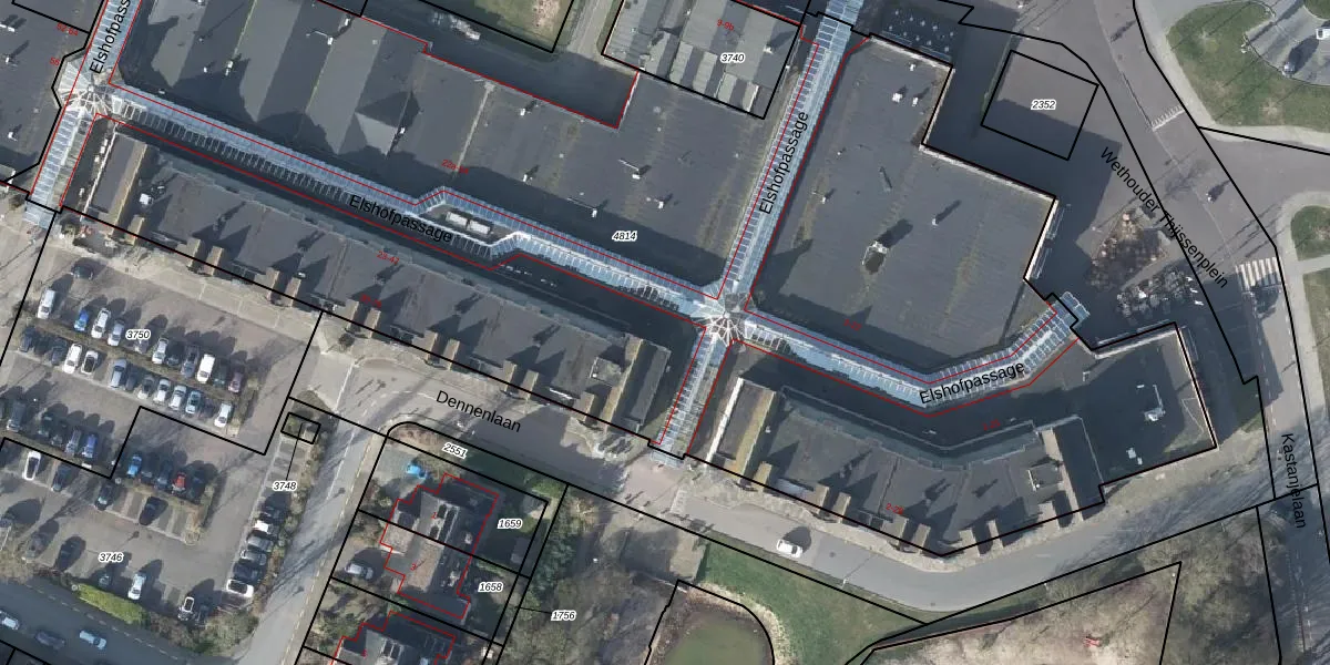 Elshofpassage 23 is gelegen op kadastraal perceel DVN00E4814. Deze kadastrale aanduiding is uniek en wordt gebruikt door het Kadaster om eigendomsrechten en andere zakelijke rechten vast te leggen. Het perceel maakt onderdeel uit van de kadastrale gemeente Duiven.