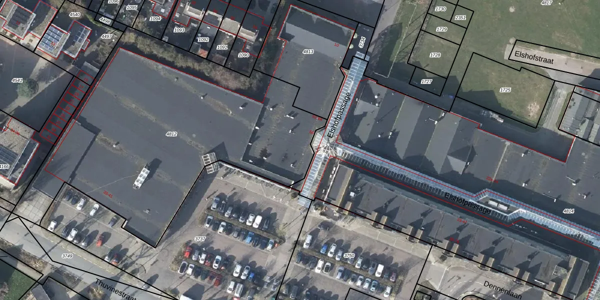 Het perceel waarop Elshofpassage 64 staat heeft een oppervlakte van 3780 m². Dit is een zeer groot perceel. De perceeloppervlakte wordt geregistreerd door het Kadaster. Gedetailleerde informatie over de maten van dit perceel kunt u vinden in het rapport Kadastrale kaart met maatvoering van Elshofpassage 64.