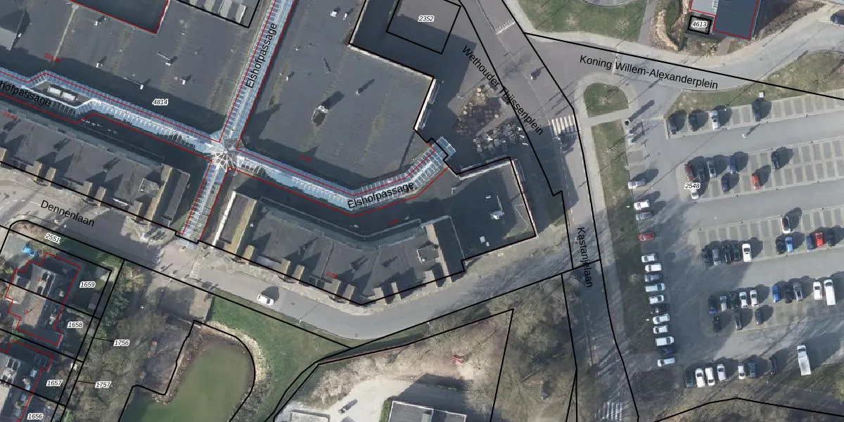 Elshofpassage 7 is gelegen op kadastraal perceel DVN00E4814. Deze kadastrale aanduiding is uniek en wordt gebruikt door het Kadaster om eigendomsrechten en andere zakelijke rechten vast te leggen. Het perceel maakt onderdeel uit van de kadastrale gemeente Duiven.
