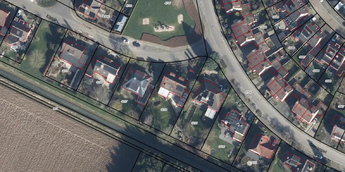 Het perceel waarop het adres ligt is DVN00-E-3218. De afkorting 'DVN00' staat voor kadastrale gemeente Duiven. Het perceel is kleiner dan gemiddeld in Duiven. Het perceel is 888 m² groot, terwijl het gemiddelde ligt op 2659,67 m². De grootste perceeloppervlakte in de kadastrale gemeente is 22,4 ha. De kleinste oppervlakte bedraagt 0 m². Er zijn geen andere adressen aanwezig op het perceel. De laatste wijziging in het de Basisregistratie Kadaster (BRK) was op 05-11-2003.
