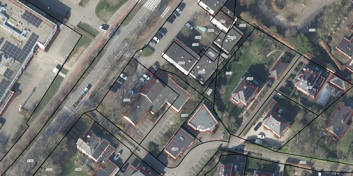 Het perceel waarop Eltensestraat 17-e staat heeft een oppervlakte van 672 m². Dit is een groot perceel. De perceeloppervlakte wordt geregistreerd door het Kadaster. Gedetailleerde informatie over de maten van dit perceel kunt u vinden in het rapport Kadastrale kaart met maatvoering van Eltensestraat 17-e.