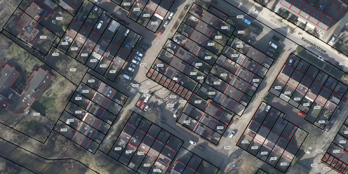 Het perceel waarop Eltingerhof 14-g staat heeft een oppervlakte van 16 m². Dit is een klein perceel. De perceeloppervlakte wordt geregistreerd door het Kadaster. Gedetailleerde informatie over de maten van dit perceel kunt u vinden in het rapport Kadastrale kaart met maatvoering van Eltingerhof 14-g.