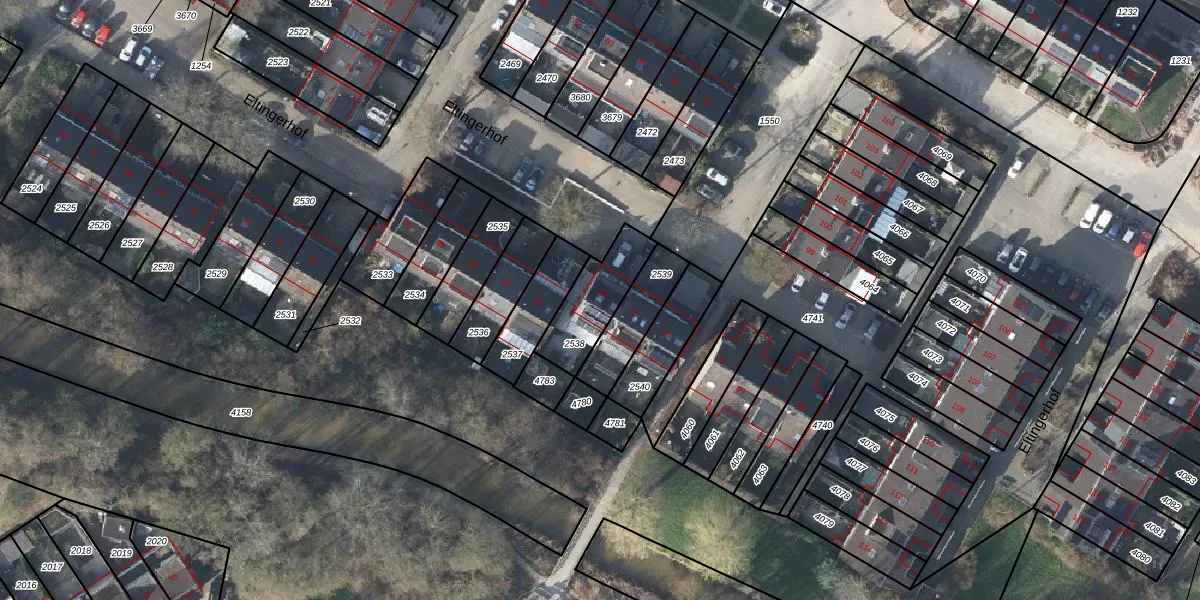 Het perceel waarop Eltingerhof 92 staat heeft een oppervlakte van 203 m². Dit is een middelgroot perceel. De perceeloppervlakte wordt geregistreerd door het Kadaster. Gedetailleerde informatie over de maten van dit perceel kunt u vinden in het rapport Kadastrale kaart met maatvoering van Eltingerhof 92.