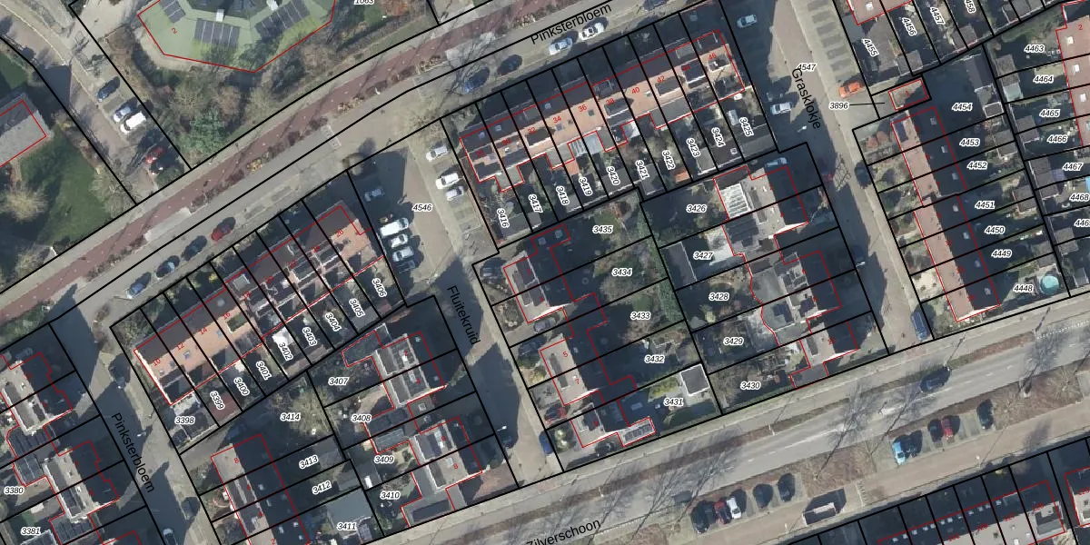 Gebruik de zoekbalk of klik op een perceel voor informatie over de adressen binnen dit perceel.