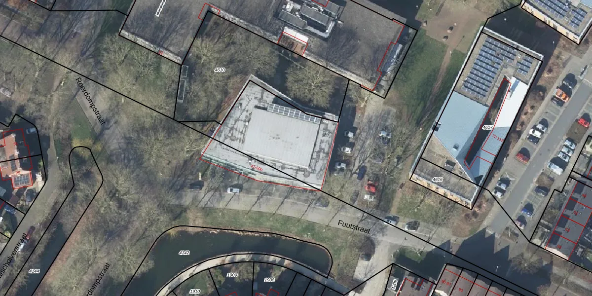 Het perceel waarop Fuutstraat 50-g staat heeft een oppervlakte van 5,8 ha. Dit is een zeer groot perceel. De perceeloppervlakte wordt geregistreerd door het Kadaster. Gedetailleerde informatie over de maten van dit perceel kunt u vinden in het rapport Kadastrale kaart met maatvoering van Fuutstraat 50-g.