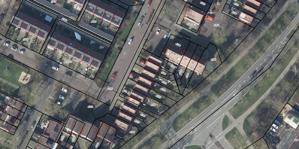 Fuutstraat 53 is gelegen op kadastraal perceel DVN00E4191. Deze kadastrale aanduiding is uniek en wordt gebruikt door het Kadaster om eigendomsrechten en andere zakelijke rechten vast te leggen. Het perceel maakt onderdeel uit van de kadastrale gemeente Duiven.