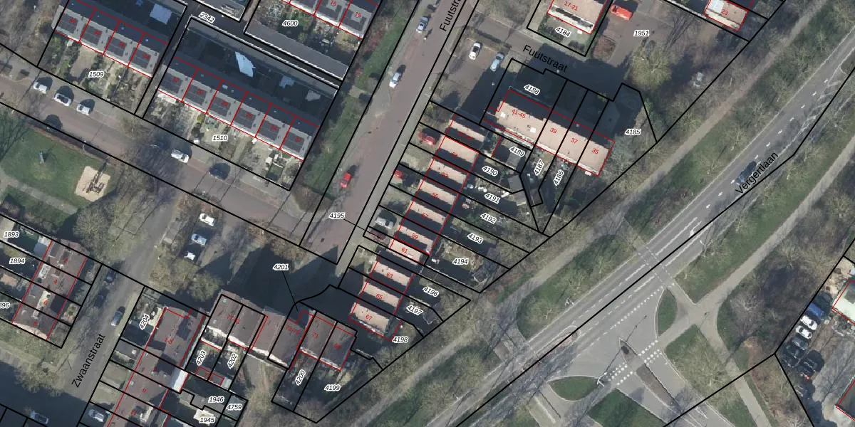 Het perceel waarop Fuutstraat 57 staat heeft een oppervlakte van 193 m². Dit is een middelgroot perceel. De perceeloppervlakte wordt geregistreerd door het Kadaster. Gedetailleerde informatie over de maten van dit perceel kunt u vinden in het rapport Kadastrale kaart met maatvoering van Fuutstraat 57.