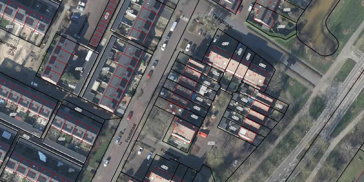 Fuutstraat 9 is gelegen op kadastraal perceel DVN00E4181. Deze kadastrale aanduiding is uniek en wordt gebruikt door het Kadaster om eigendomsrechten en andere zakelijke rechten vast te leggen. Het perceel maakt onderdeel uit van de kadastrale gemeente Duiven.