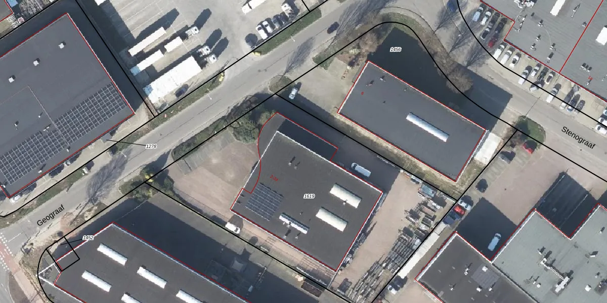 Het perceel waarop Geograaf 2-a staat heeft een oppervlakte van 3620 m². Dit is een zeer groot perceel. De perceeloppervlakte wordt geregistreerd door het Kadaster. Gedetailleerde informatie over de maten van dit perceel kunt u vinden in het rapport Kadastrale kaart met maatvoering van Geograaf 2-a.
