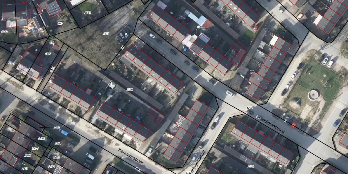 Het perceel waarop Gladiolenstraat 13 staat heeft een oppervlakte van 4264 m². Dit is een zeer groot perceel. De perceeloppervlakte wordt geregistreerd door het Kadaster. Gedetailleerde informatie over de maten van dit perceel kunt u vinden in het rapport Kadastrale kaart met maatvoering van Gladiolenstraat 13.