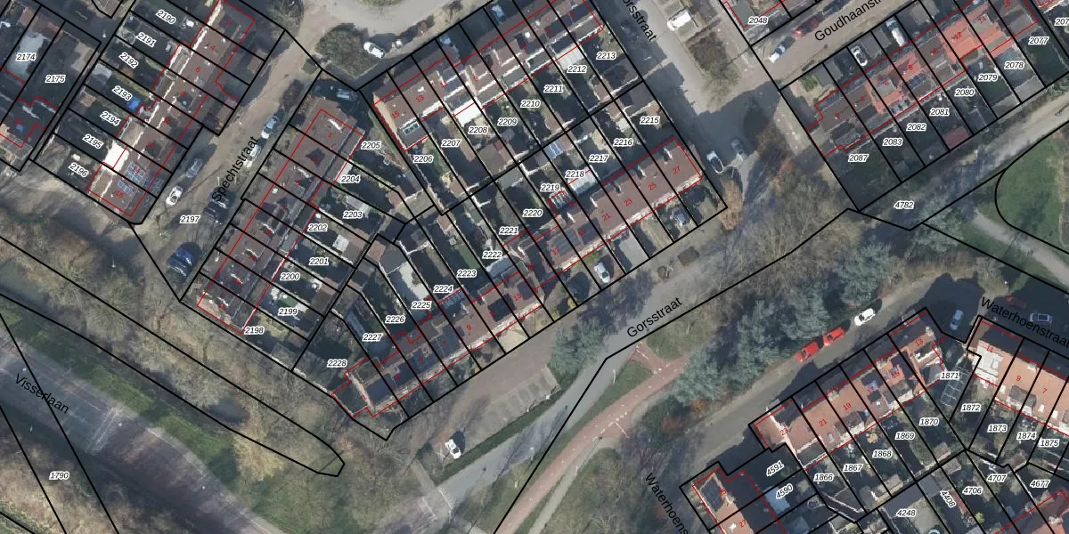 Gorsstraat 15 is gelegen op kadastraal perceel DVN00E2221. Deze kadastrale aanduiding is uniek en wordt gebruikt door het Kadaster om eigendomsrechten en andere zakelijke rechten vast te leggen. Het perceel maakt onderdeel uit van de kadastrale gemeente Duiven.