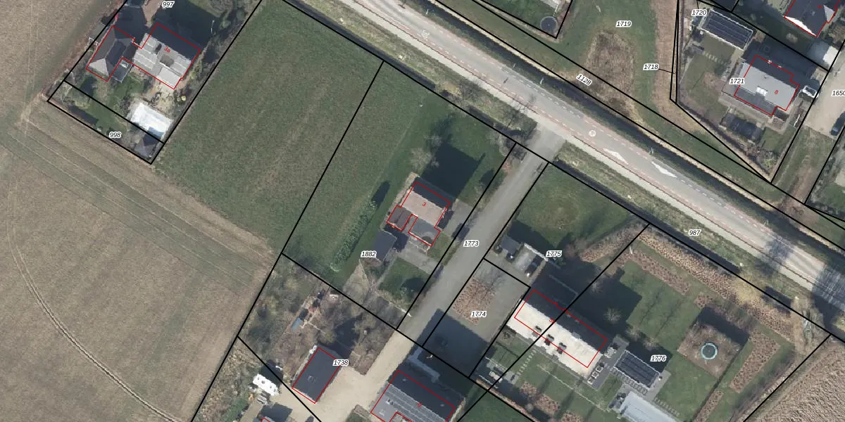 Het adres is gelegen op perceel 1882 in de sectie H en de kadastrale gemeente Duiven. De kadastrale aanduiding is aldus DVN00-H-1882. Het perceel is 1810 m² groot. Dat is kleiner dan de gemiddelde perceeloppervlakte in Duiven, dat op 2659,42 m² ligt. De grootste perceeloppervlakte in de kadastrale gemeente is 22,4 ha. De kleinste oppervlakte bedraagt 0 m². Er zijn geen andere adressen aanwezig op het perceel. De huidige grenzen van het perceel zijn digitaal in de Basisregistratie Kadaster (BRK) geregistreerd op 07-04-2016.