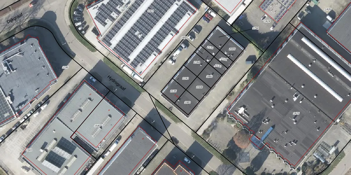 Gebruik de zoekbalk of klik op een perceel voor informatie over de adressen binnen dit perceel.