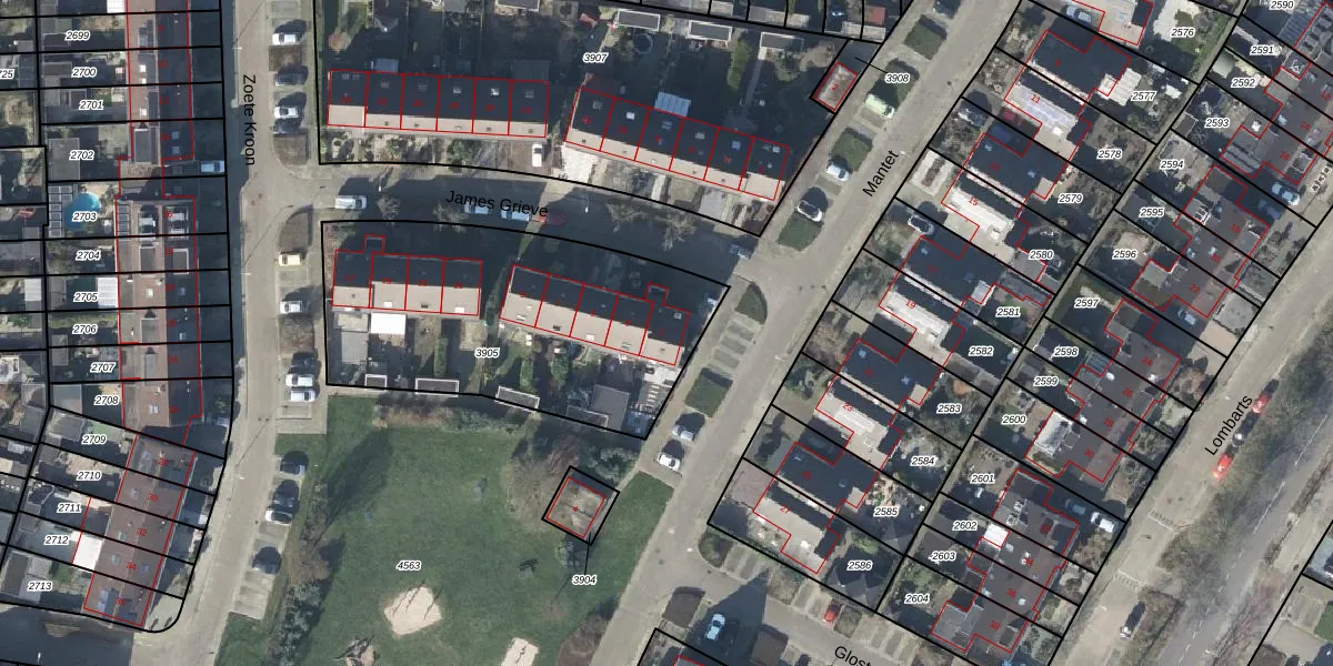 James Grieve 1 is gelegen op kadastraal perceel DVN00E3905. Deze kadastrale aanduiding is uniek en wordt gebruikt door het Kadaster om eigendomsrechten en andere zakelijke rechten vast te leggen. Het perceel maakt onderdeel uit van de kadastrale gemeente Duiven.