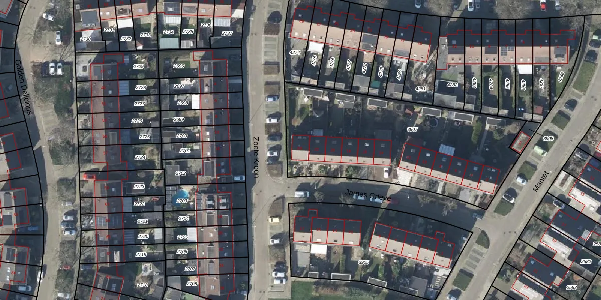 James Grieve 24 is gelegen op kadastraal perceel DVN00E3907. Deze kadastrale aanduiding is uniek en wordt gebruikt door het Kadaster om eigendomsrechten en andere zakelijke rechten vast te leggen. Het perceel maakt onderdeel uit van de kadastrale gemeente Duiven.
