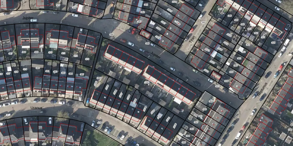 Het perceel waarop Jupiter 13 staat heeft een oppervlakte van 1679 m². Dit is een zeer groot perceel. De perceeloppervlakte wordt geregistreerd door het Kadaster. Gedetailleerde informatie over de maten van dit perceel kunt u vinden in het rapport Kadastrale kaart met maatvoering van Jupiter 13.