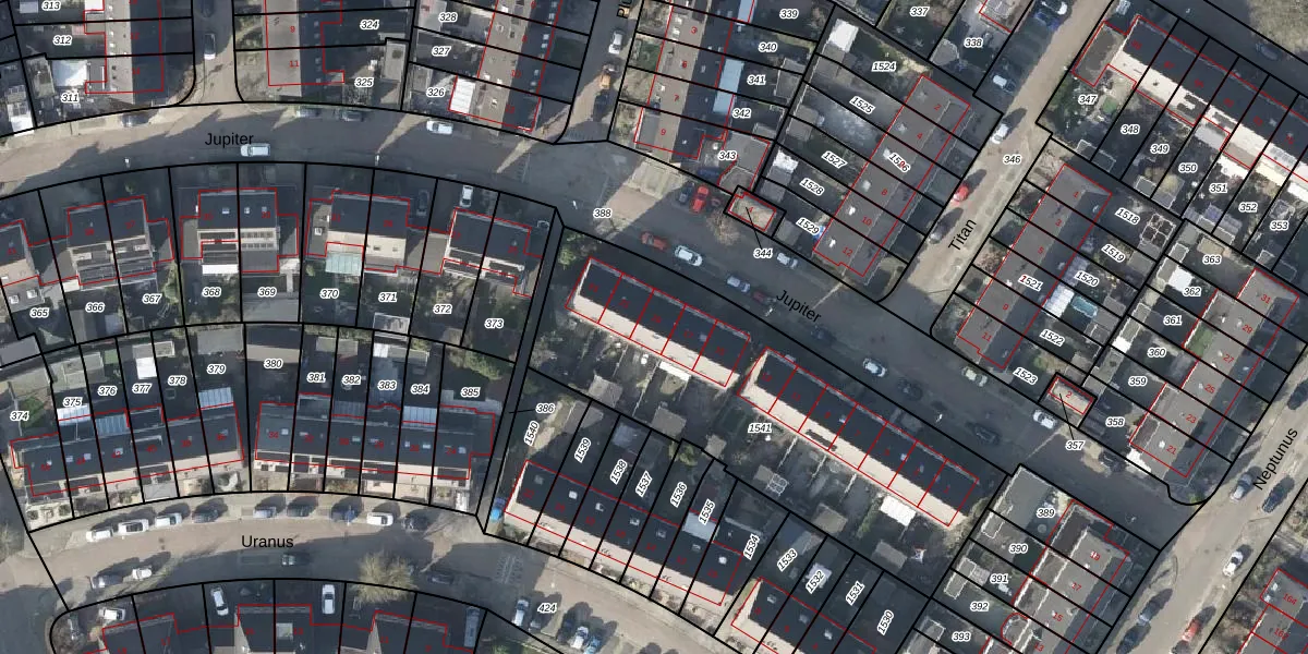 Het perceel waarop Jupiter 19 staat heeft een oppervlakte van 1679 m². Dit is een zeer groot perceel. De perceeloppervlakte wordt geregistreerd door het Kadaster. Gedetailleerde informatie over de maten van dit perceel kunt u vinden in het rapport Kadastrale kaart met maatvoering van Jupiter 19.