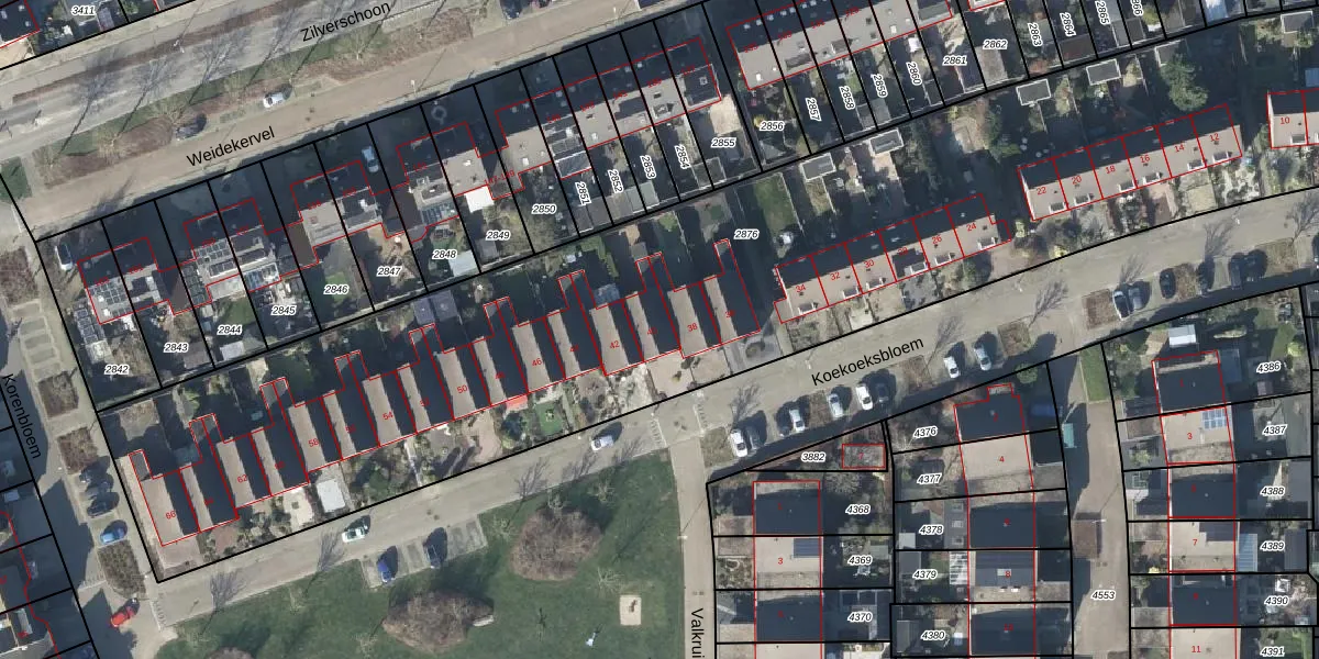Koekoeksbloem 40 is gelegen op kadastraal perceel DVN00E2876. Deze kadastrale aanduiding is uniek en wordt gebruikt door het Kadaster om eigendomsrechten en andere zakelijke rechten vast te leggen. Het perceel maakt onderdeel uit van de kadastrale gemeente Duiven.