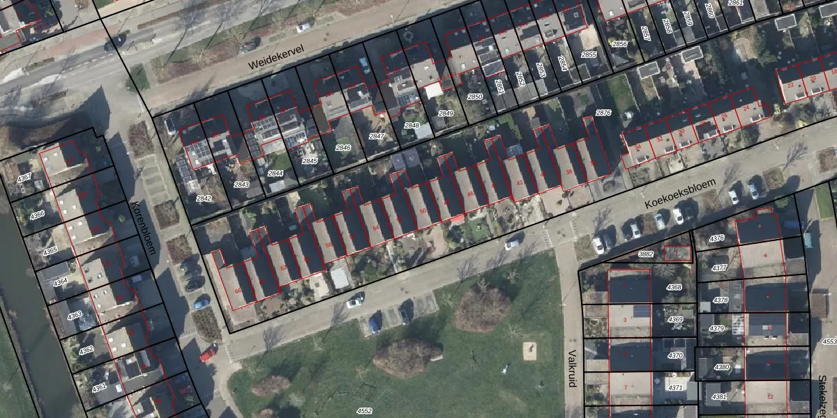 Koekoeksbloem 50 is gelegen op kadastraal perceel DVN00E2876. Deze kadastrale aanduiding is uniek en wordt gebruikt door het Kadaster om eigendomsrechten en andere zakelijke rechten vast te leggen. Het perceel maakt onderdeel uit van de kadastrale gemeente Duiven.