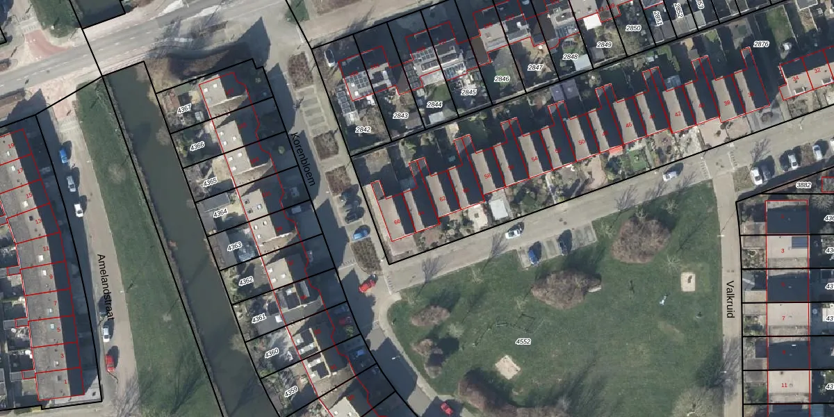 Het perceel waarop Koekoeksbloem 64 staat heeft een oppervlakte van 5855 m². Dit is een zeer groot perceel. De perceeloppervlakte wordt geregistreerd door het Kadaster. Gedetailleerde informatie over de maten van dit perceel kunt u vinden in het rapport Kadastrale kaart met maatvoering van Koekoeksbloem 64.
