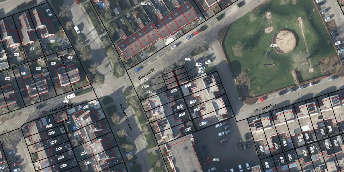 Het perceel waarop Koeweide 12 staat heeft een oppervlakte van 22 m². Dit is een klein perceel. De perceeloppervlakte wordt geregistreerd door het Kadaster. Gedetailleerde informatie over de maten van dit perceel kunt u vinden in het rapport Kadastrale kaart met maatvoering van Koeweide 12.