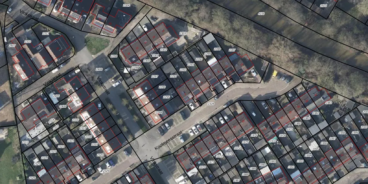 Gebruik de zoekbalk of klik op een perceel voor informatie over de adressen binnen dit perceel.
