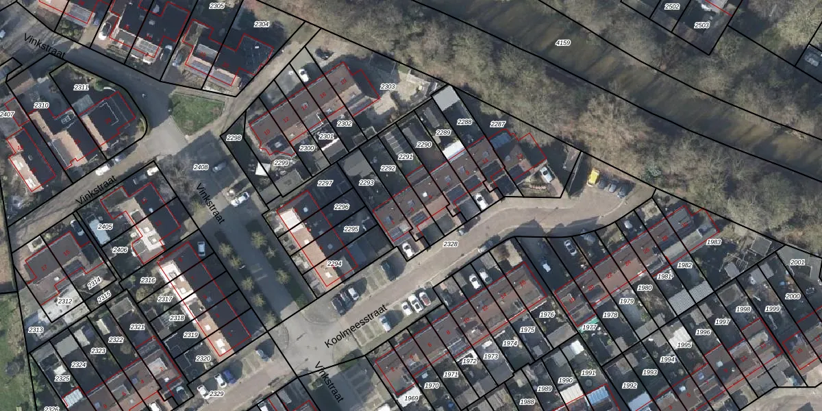 Gebruik de zoekbalk of klik op een perceel voor informatie over de adressen binnen dit perceel.