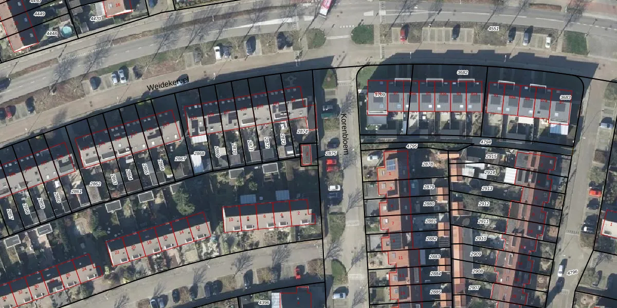 Korenbloem 2 is gelegen op kadastraal perceel DVN00E2875. Deze kadastrale aanduiding is uniek en wordt gebruikt door het Kadaster om eigendomsrechten en andere zakelijke rechten vast te leggen. Het perceel maakt onderdeel uit van de kadastrale gemeente Duiven.