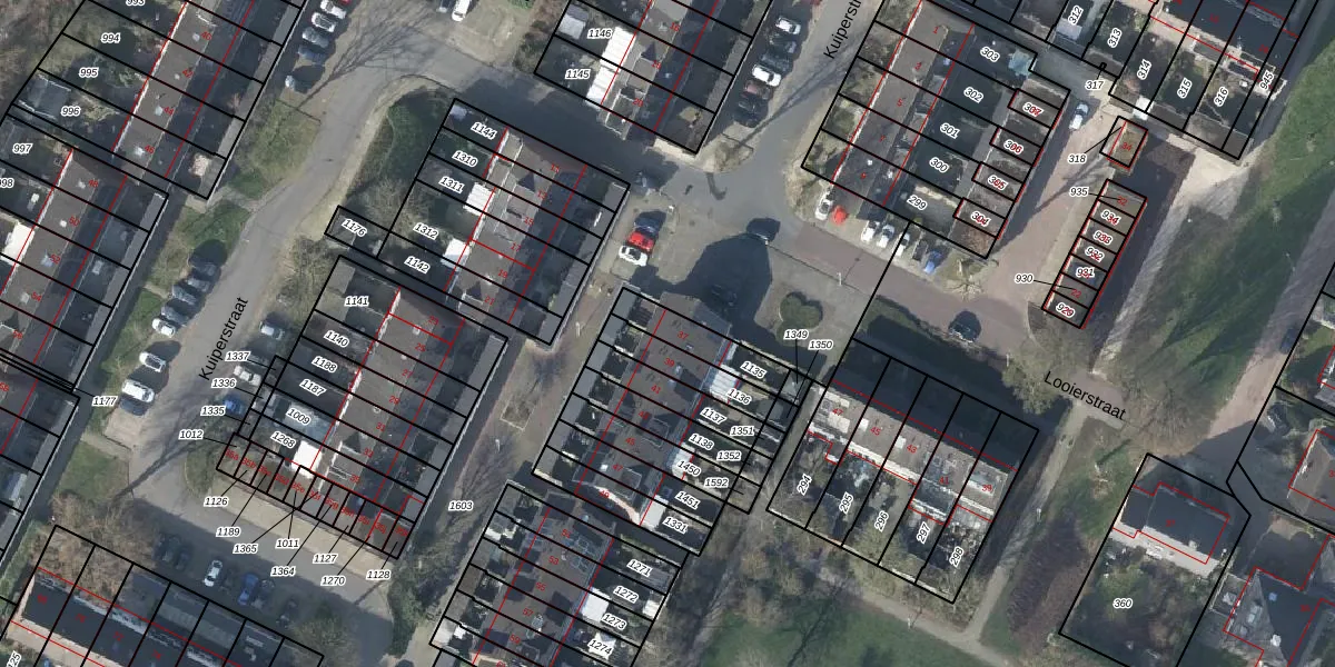 Gebruik de zoekbalk of klik op een perceel voor informatie over de adressen binnen dit perceel.
