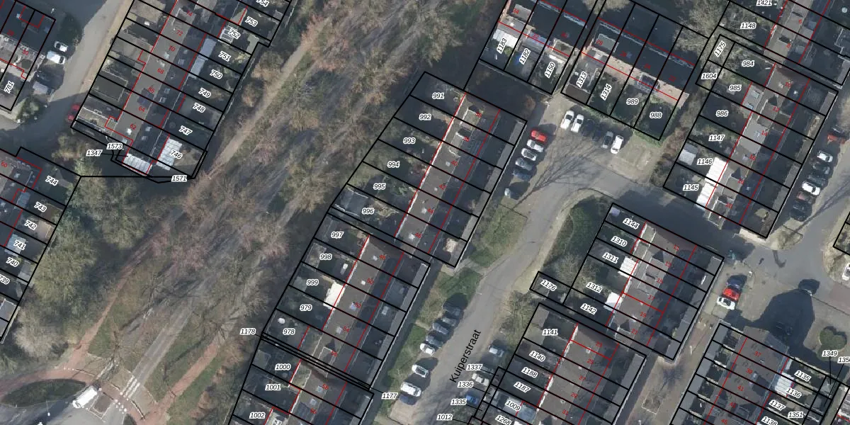 Het perceel waarop Kuiperstraat 44 staat heeft een oppervlakte van 195 m². Dit is een middelgroot perceel. De perceeloppervlakte wordt geregistreerd door het Kadaster. Gedetailleerde informatie over de maten van dit perceel kunt u vinden in het rapport Kadastrale kaart met maatvoering van Kuiperstraat 44.